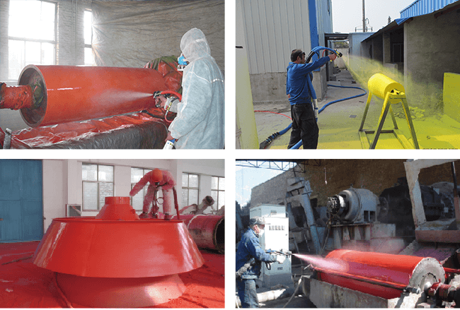 礦山耐磨防腐聚脲材料是由異氰酸酯半預(yù)聚體、胺類擴鏈劑、聚醚、顏料以及助劑等主要原料組成的聚脲彈性體材料。材料具有優(yōu)異的耐磨性和防腐性能。是采用新工藝新技術(shù)噴涂成型的高性能材料。